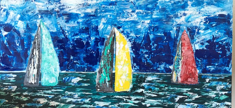 LET ME TELL YOU—While I really couldn’t reflect it in the painting, Each boat represents a verse in a song I heard at church today that I really like.: